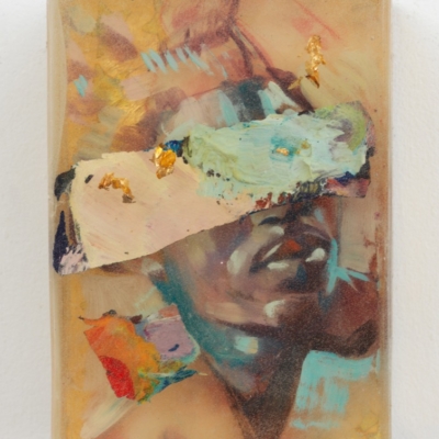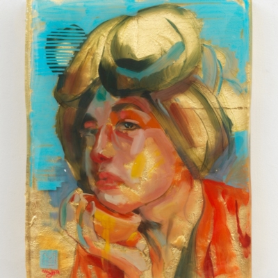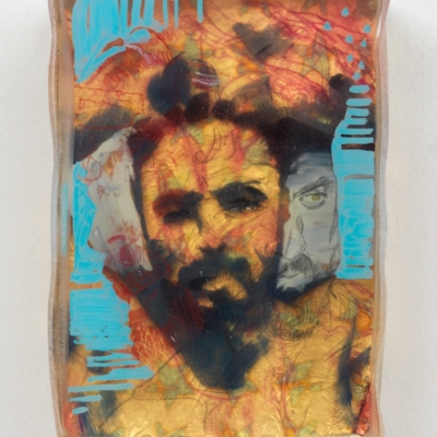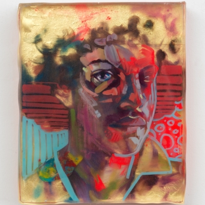 original painting of David Bowie created by Marc Scheff using oil paint, gold leaf, and artresin epoxy resin